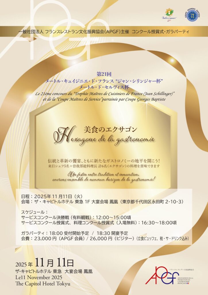 第21回メートル・キュイジニエ・ド・フランス”ジャン・シリンジャー杯”&メートル・ド・セルヴィス杯コンクール授賞式・ガラパーティが開催されます!