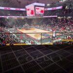 アルバルク東京のホームアリーナとういうことで会場は赤一色!