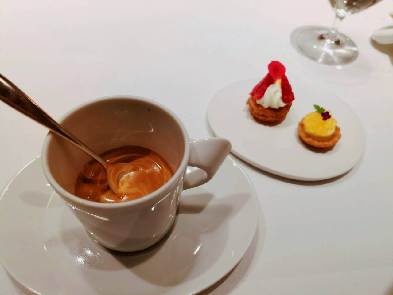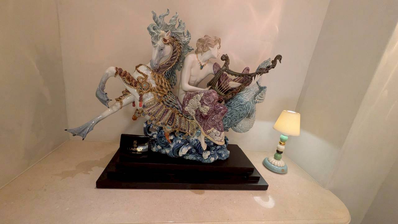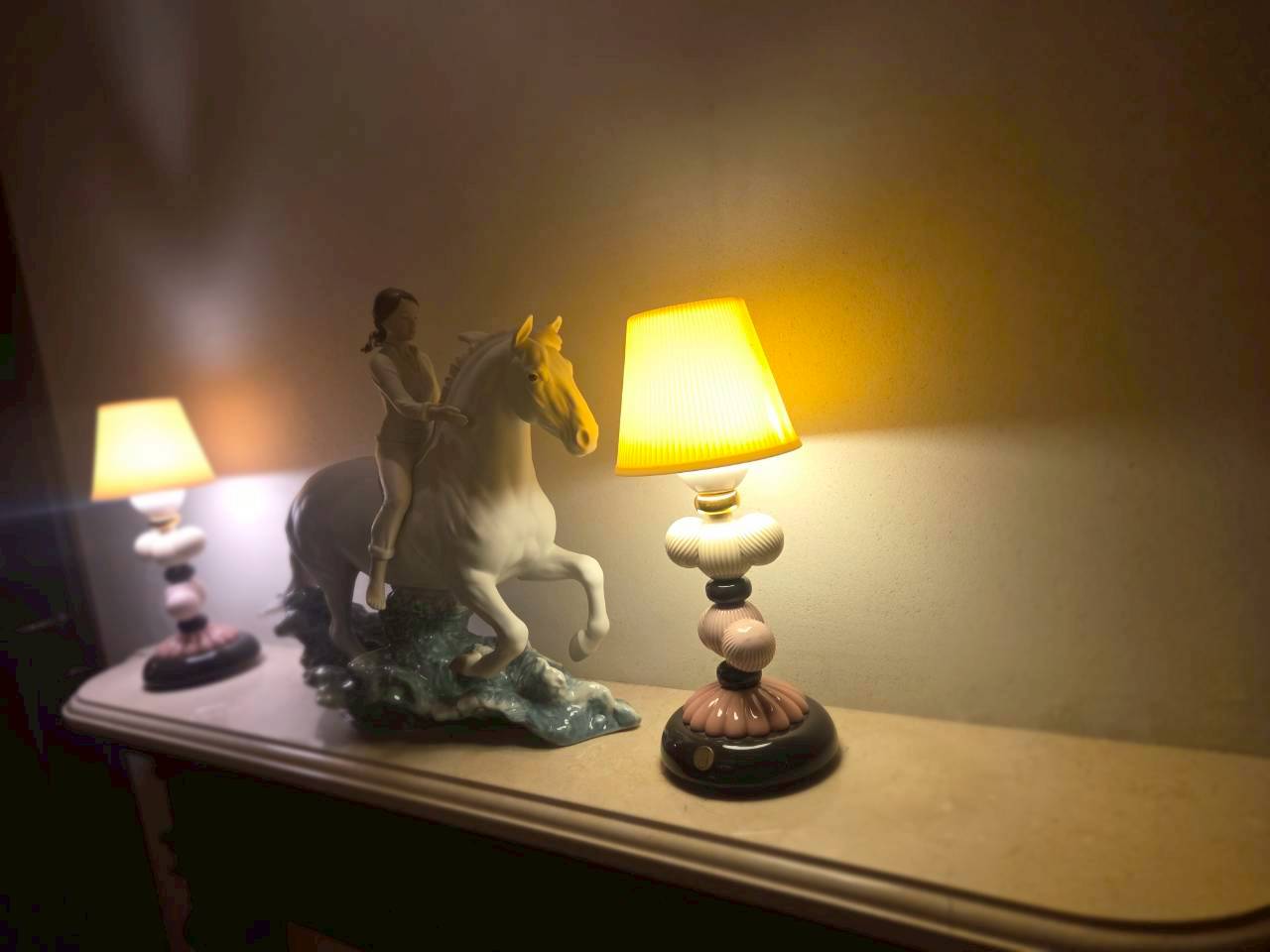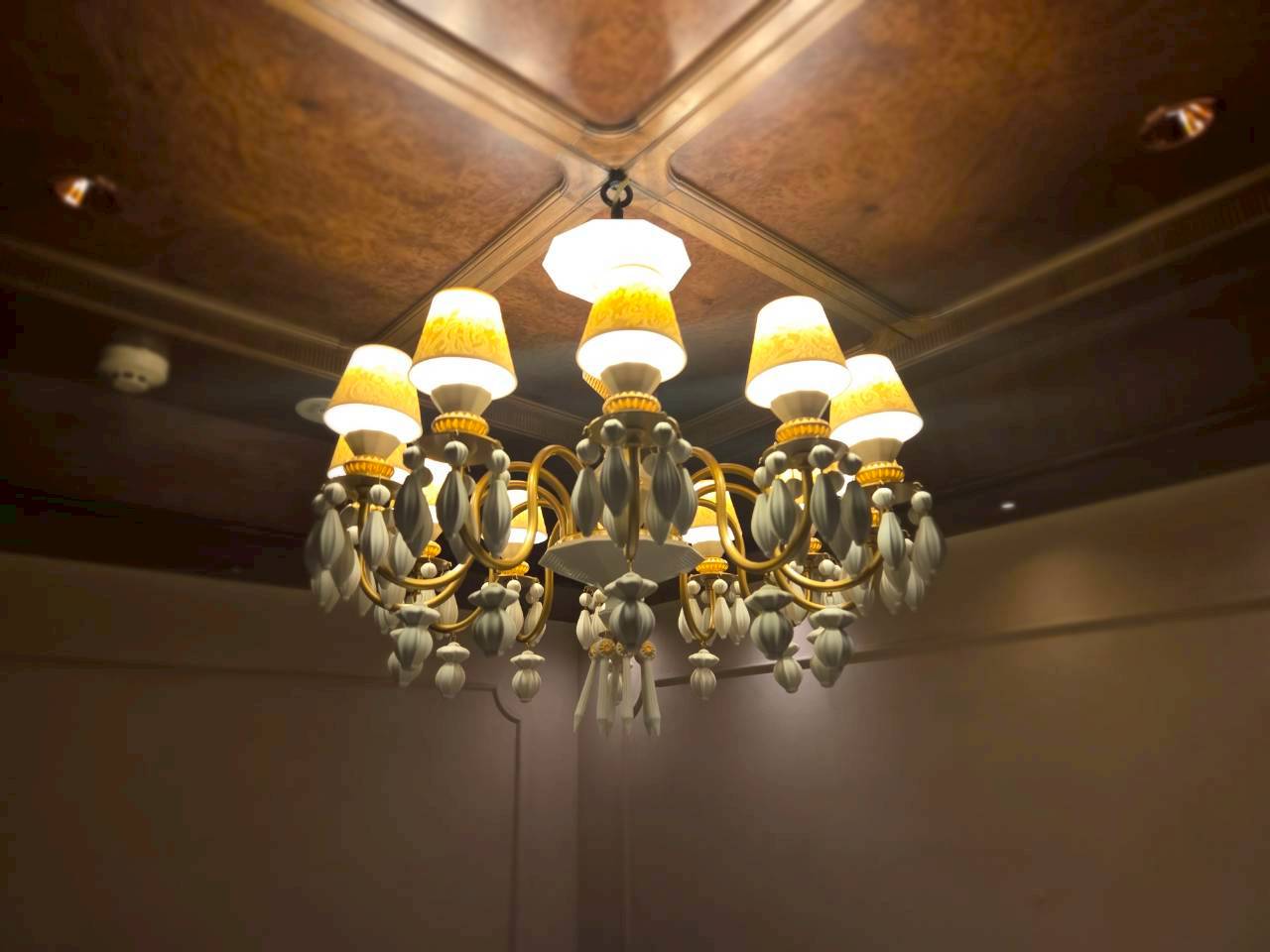 フランス語で「輝かしいシャンデリア」を意味します。地下へと続く荘厳な階段を下りると、そこには都会の喧騒を忘れるような、ゆったりと落ち着いた上質な空間が広がっています。店内は「リヤドロ」の煌びやかな調度品に彩られ、まさに店名通りの輝きに満ちていました。