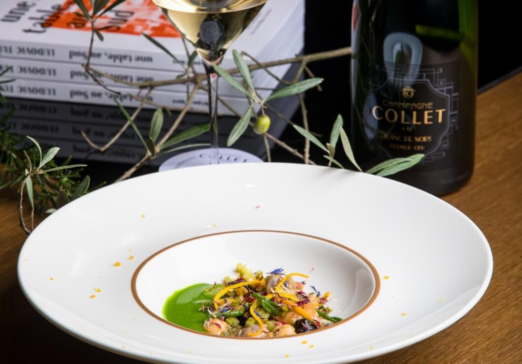 ディナー風アペリティフ、大地の恵み海の幸をコンセプトとした料理。